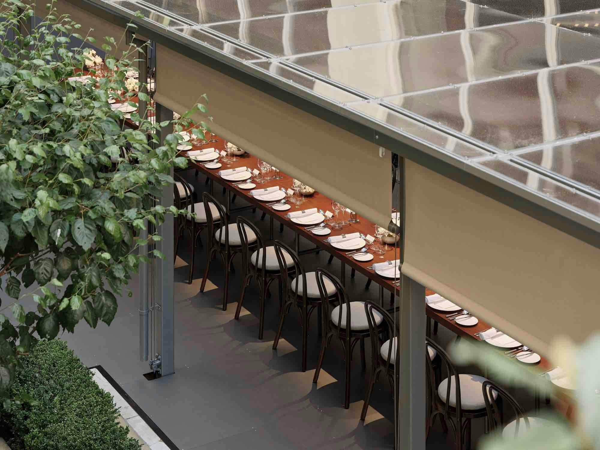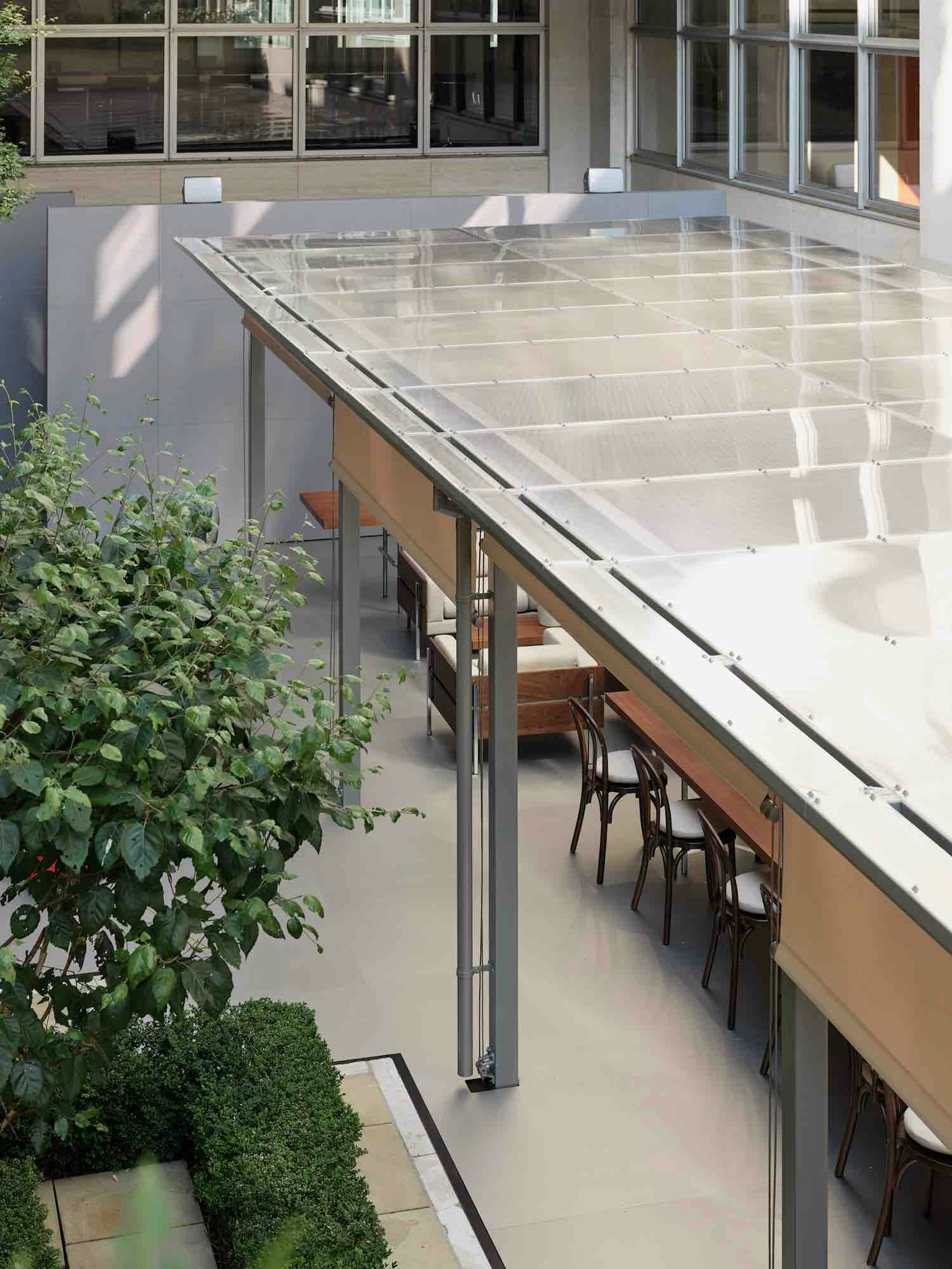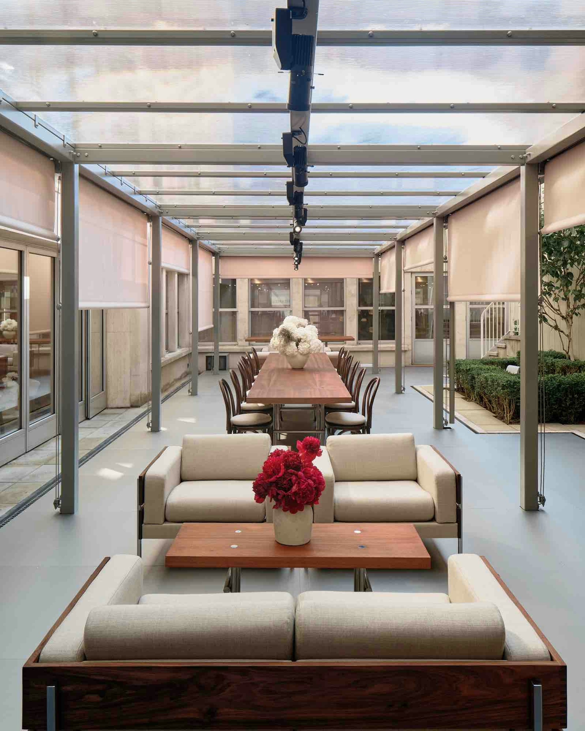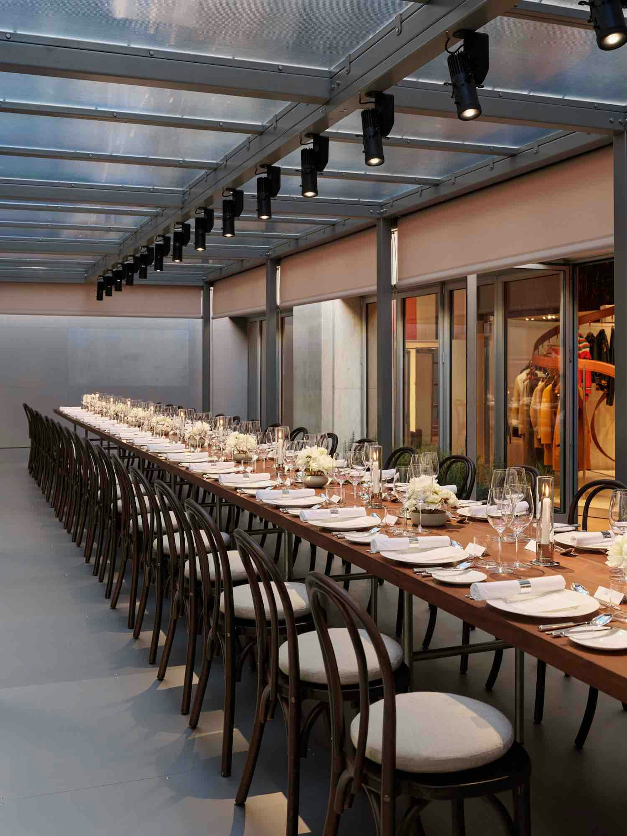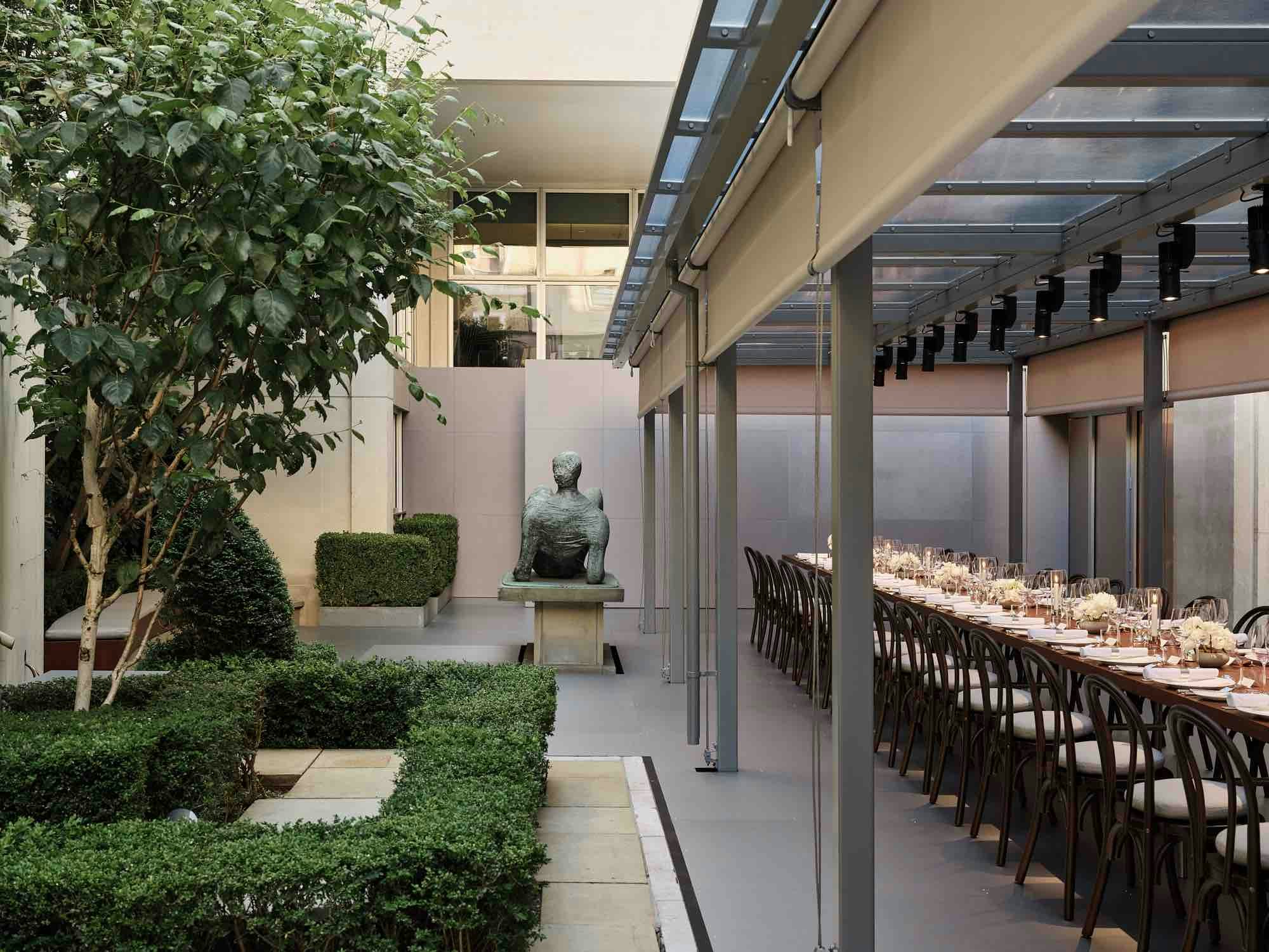 Hermès, Re Editions Pavilion, London. Designed with a refined palette of sapele, polished chrome, and British design icons, the pavilion sits quietly within the existing architecture of the Time & Life building.